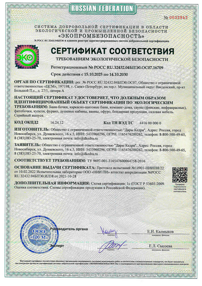 Кедр по наличию сучков делится на сорт: 0 (экстра) - не имеет сучков вообще, 1 - минимальное их количество, 2-3 сорт без ограничения по количеству сучков. Наша производственная компания хорошо изучила свойства древесины кедра, исходя из этого применяем определённый сорт для каждого типа изделий: ИК-сауны, купели, фурако делаем из кедра сорта 0-2, фитобочки - из сорта 1-2. Для фитобочек сучки необходимы, так как именно в них содержатся фитонциды. Для бань-бочек применяем 1-3 сорт, полки и лавки из 0-2 сорта.  Не поддаётся гниению, так как является природным антисептиком и древесина очень пластичная, не растрескивается, любит влагу. Именно поэтому мы работаем с кедром, ценим его и рады дарить людям здоровье!