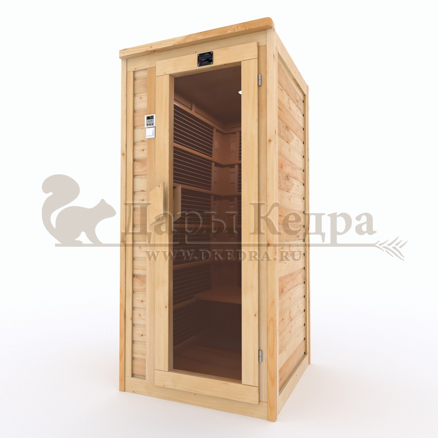 Это специально оборудованная кабина из липы для прогрева тела человека сухим теплом. Воздух в таких парных не нагревается. Инфракрасные лучи воздействуют на тело, равномерно прогревая мышцы, суставы и органы. Карбоновые излучатели, встроенные в стены кабины, обладают мягким прогревом, что полностью исключает возможность ожога. Работает кабина за счет электричества. Компактная одноместная инфракрасная сауна с карбоновыми излучателями подойдет как для домашнего использования, так и для коммерции.