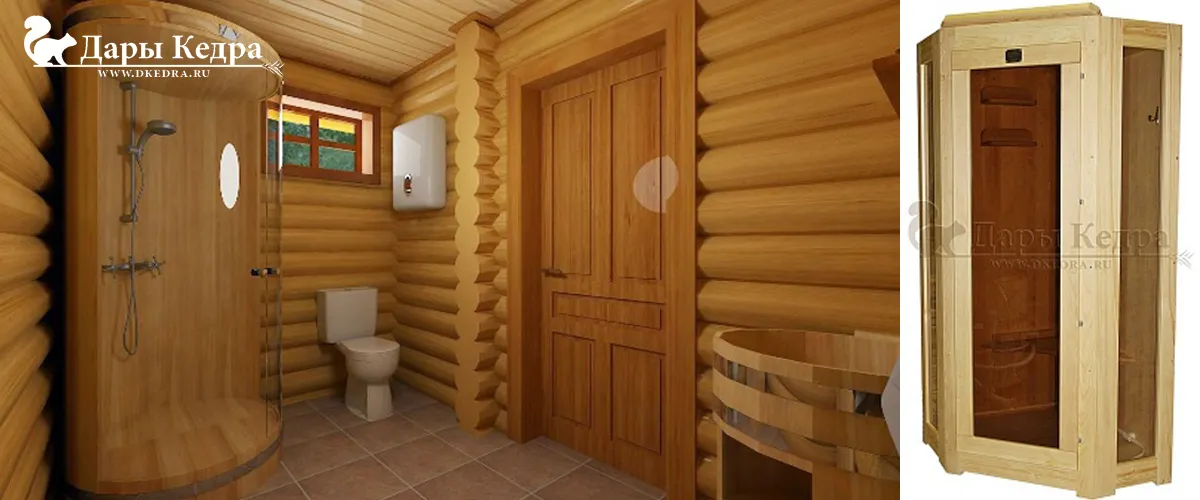 Ванная комната для каждого из нас - это не просто уголок чистоты, здоровья, это и место для уединения, расслабления, где отдыхает тело и душа...Для атмосферы спа-салона прямо у вас дома подойдут душевые из кедра. За счет фитонцидов кедровая кабина для душа благотворно влияет на здоровье во время принятия душа.