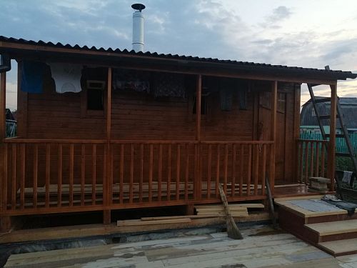 Заказали в компании Дары Кедра баньку с увеличенной верандой. Специально так запланировали, летом ставим на нее диван со столом используем как зону отдыха))) Очень аккуратная и уютная получилась. Нагревается быстро, дров много не требует. Всем довольны. Спасибо за индивидуальный заказ.